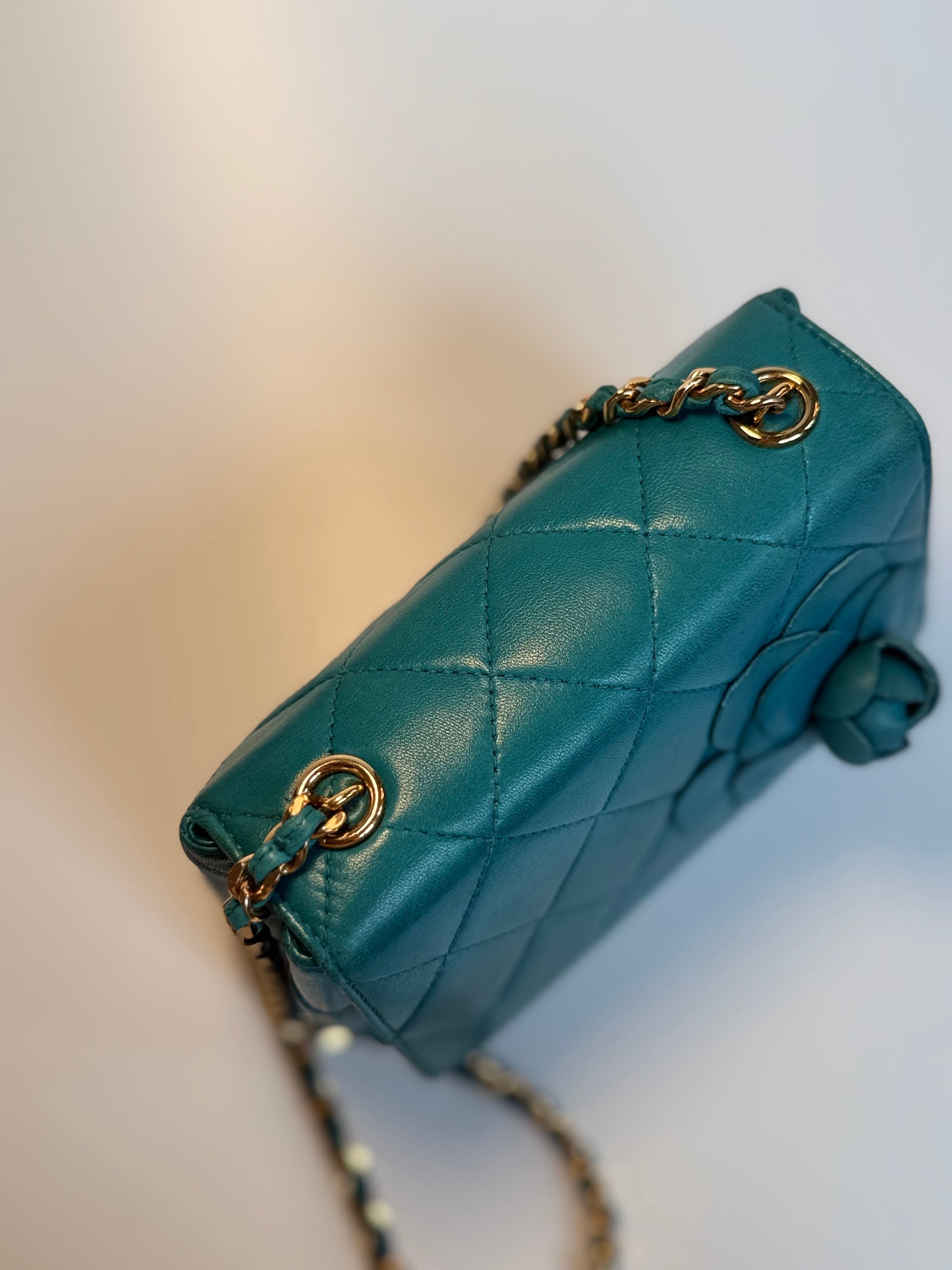 Chanel Mini Camellia Flap Bag in Turquoise Leather