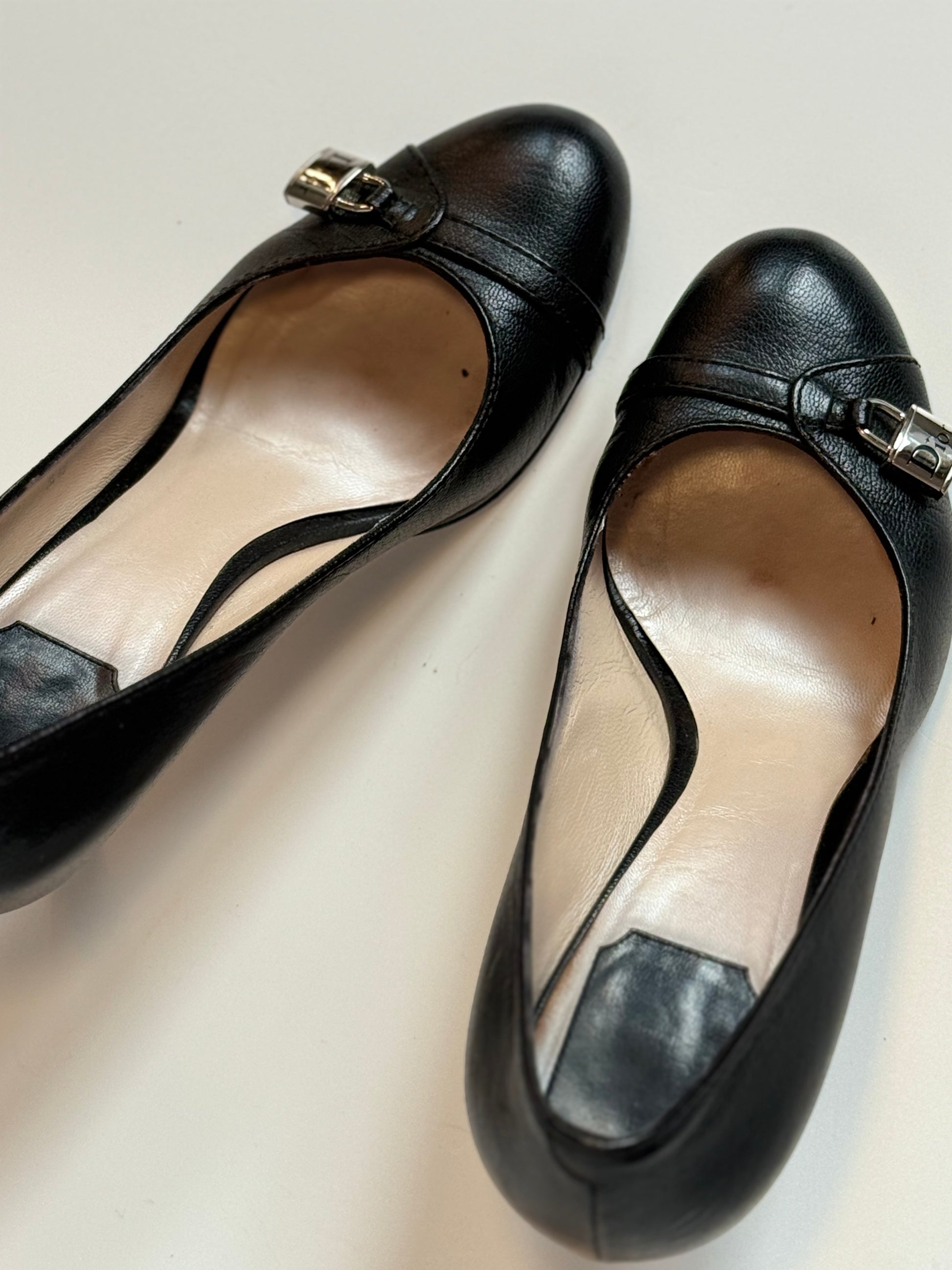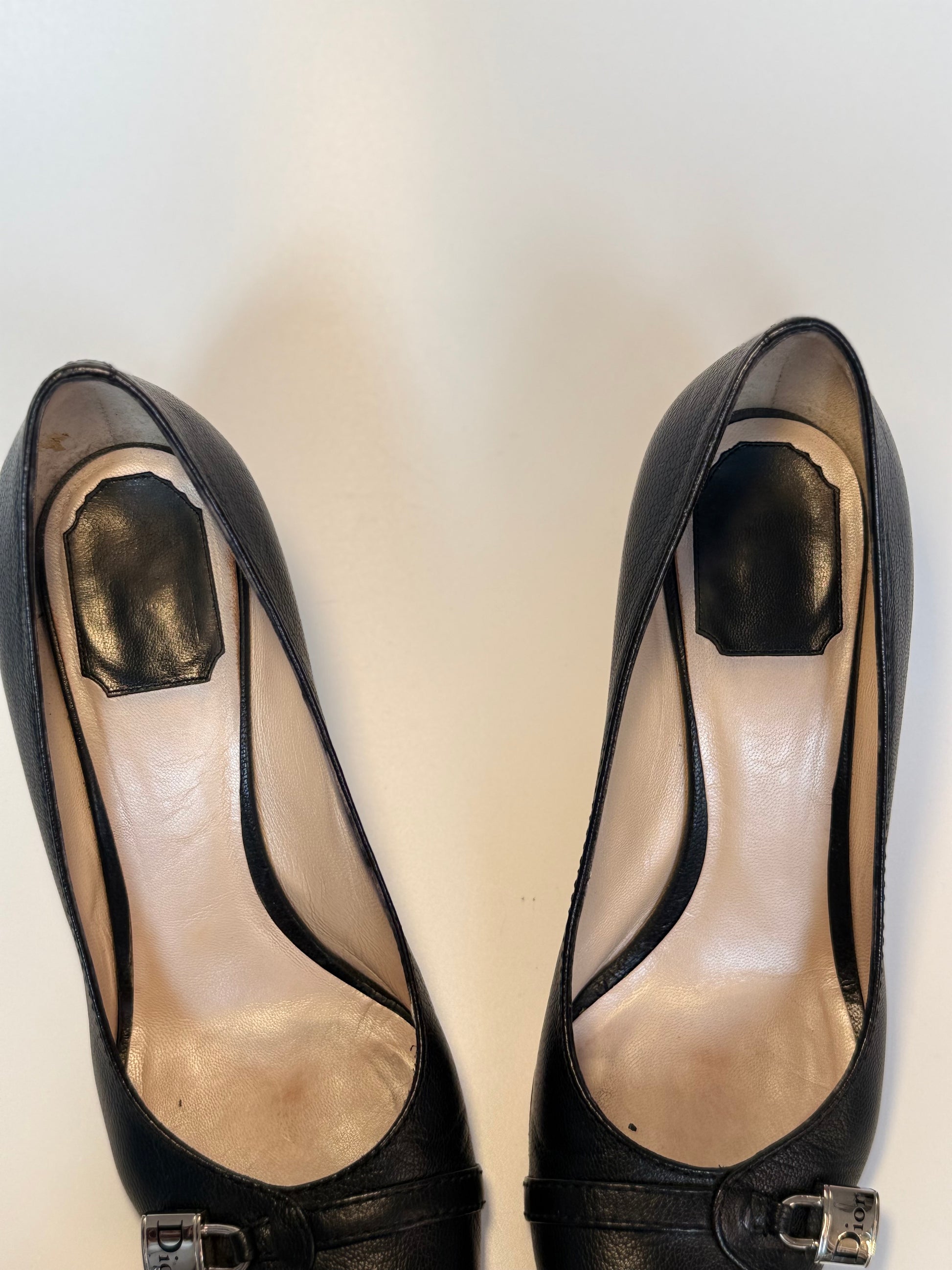 Christian Dior Padlock Heels Black Leather 38