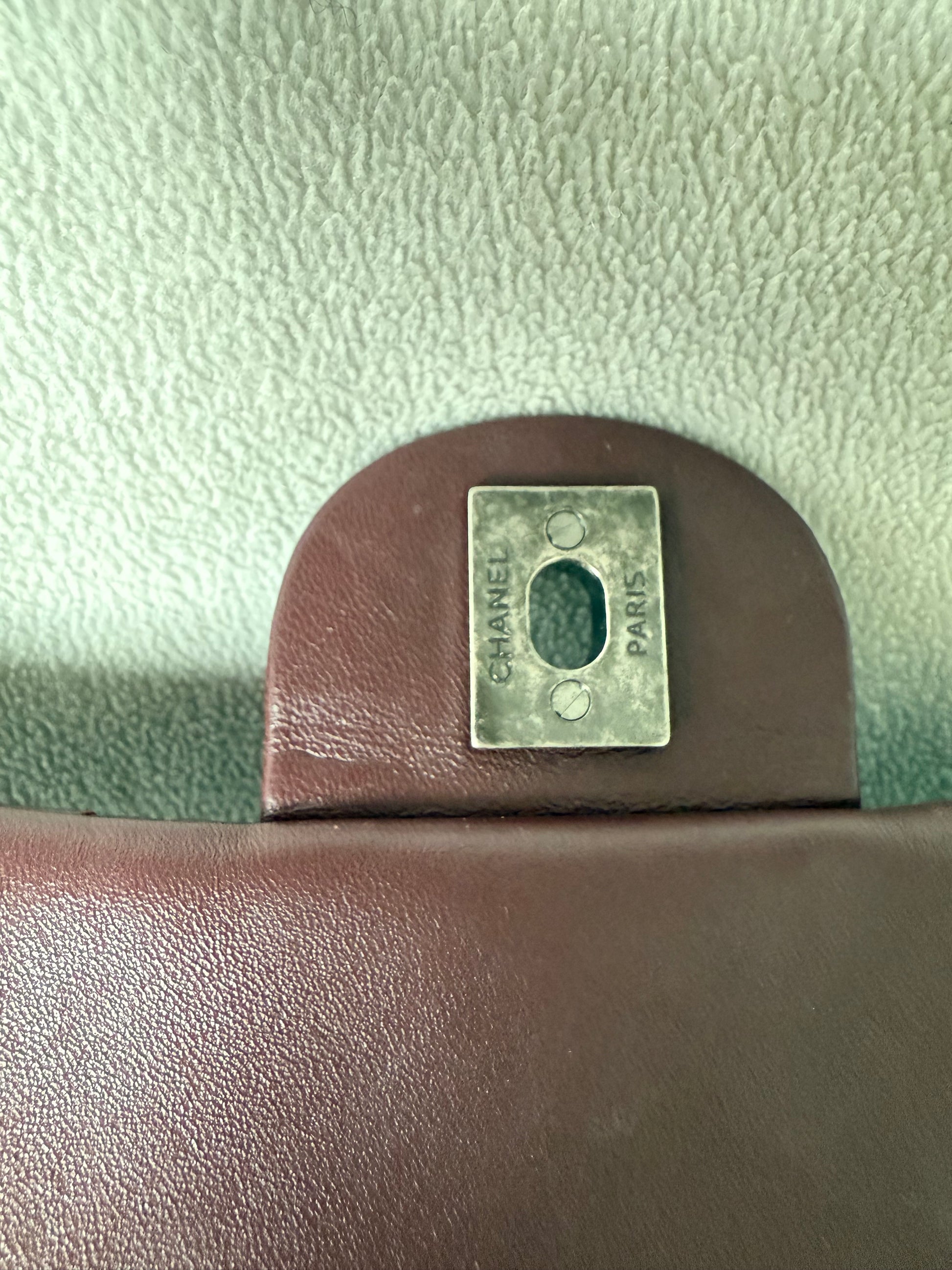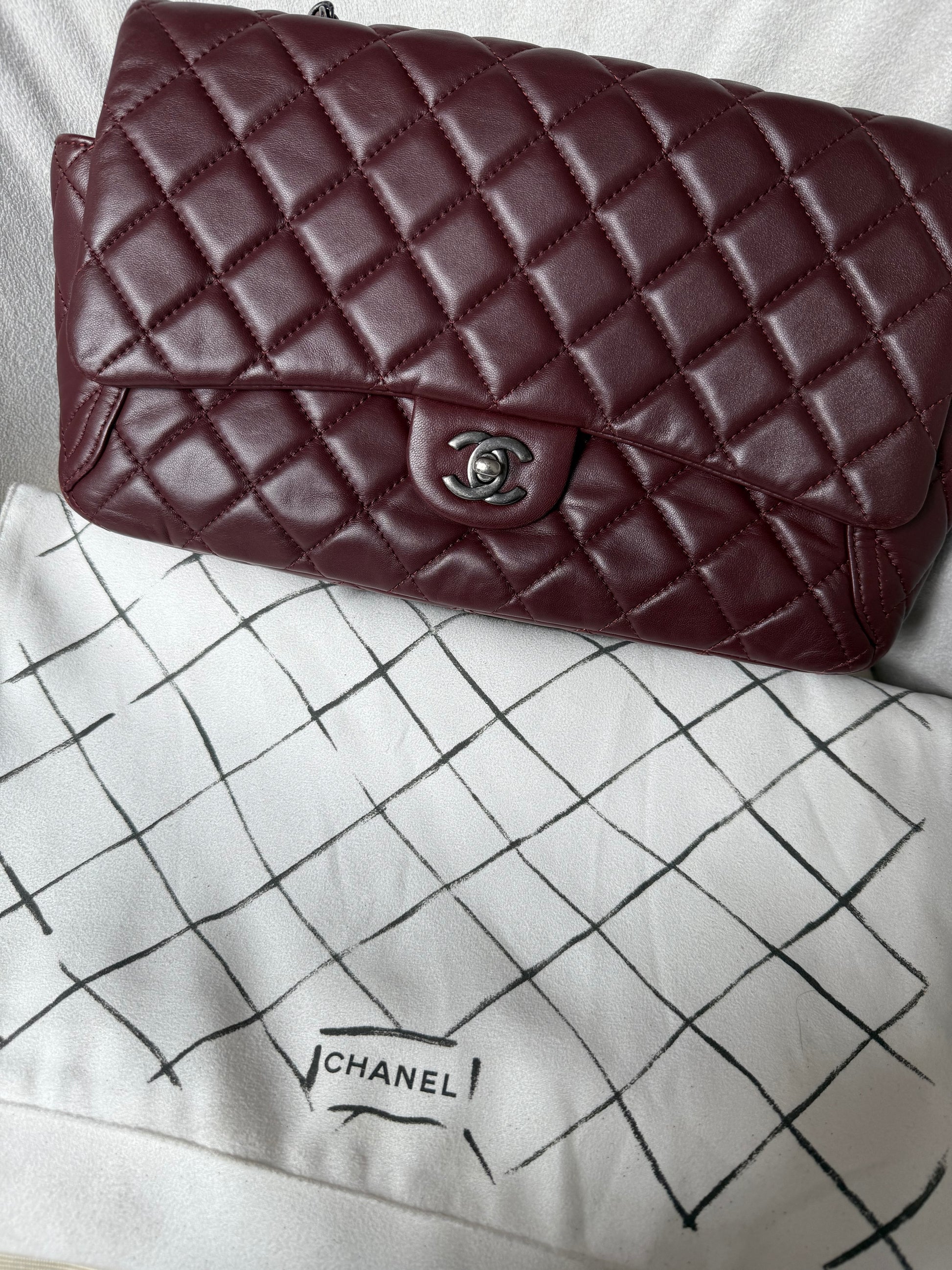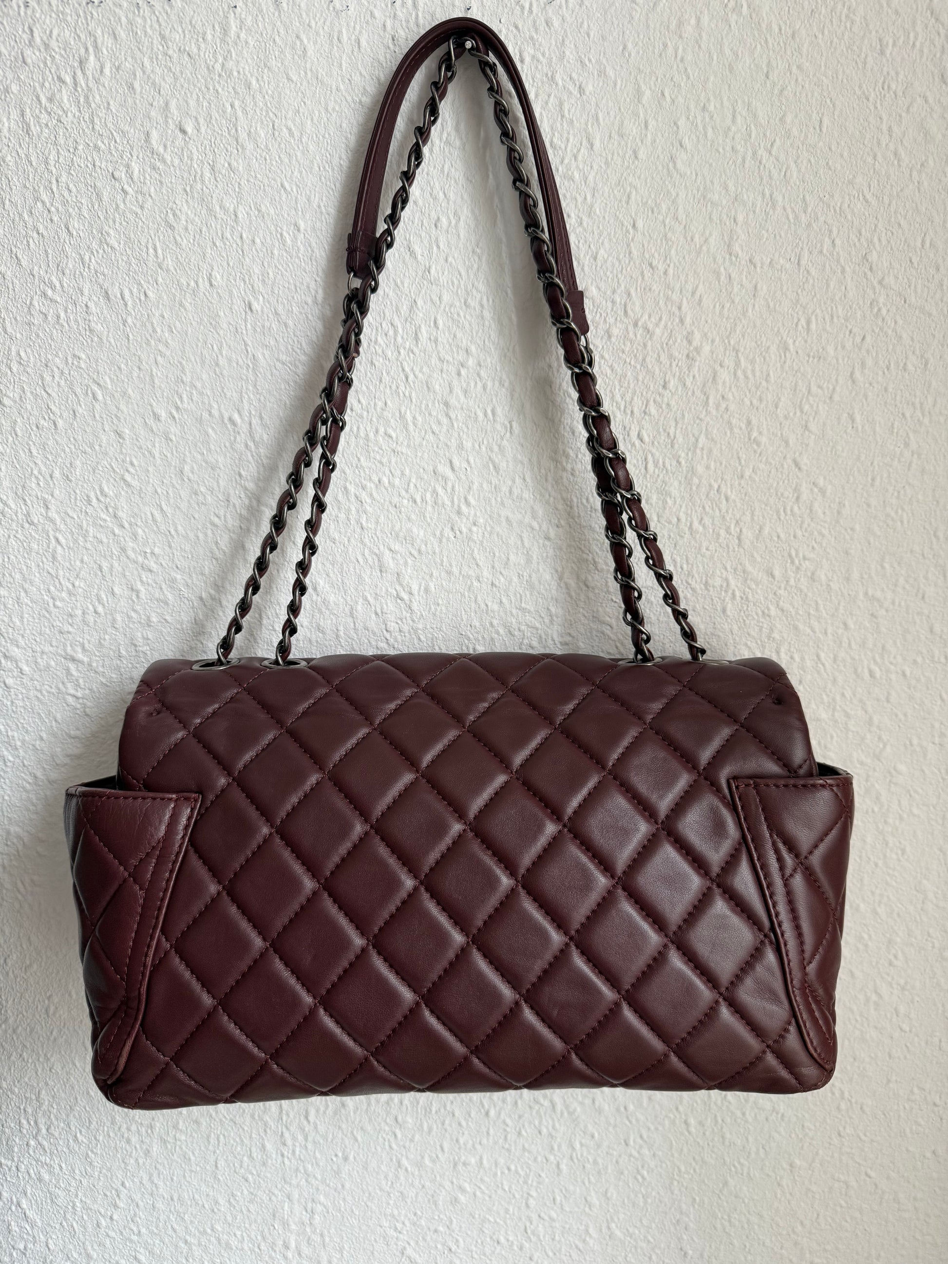 Original Chanel Classic Single Flap Bag in burgunderroter Farbe. Modell mit zwei seitlichen Außentaschen und Kettenglieder-Griff. Aus der Kollektion 2013 unter Karl Lagerfeld. Inklusive Staubbeutel und Beleg. Zustand: Kleine Gebrauchsspuren an den Ecken sowie an der Klappe, bitte Fotos beachten.