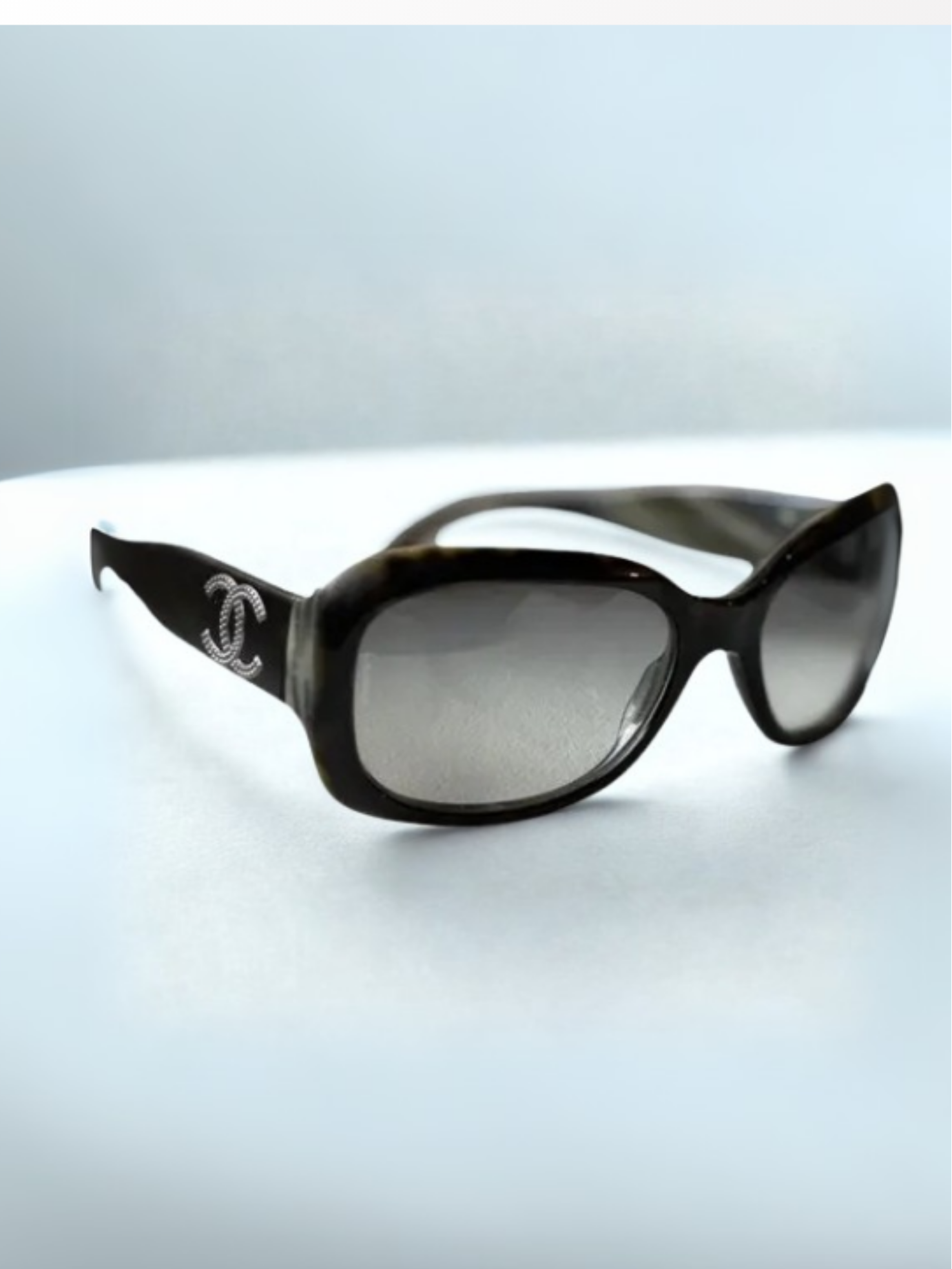 Vintage Chanel Sunglasses – Model 5102 C.653/11 – Black/Grey/Beige Pattern with Silver CC Logos